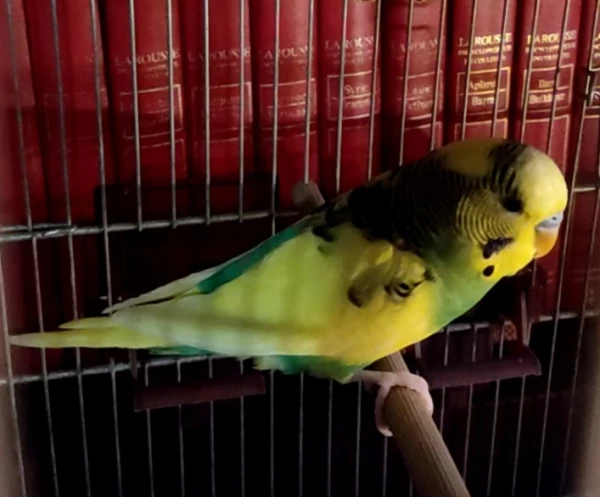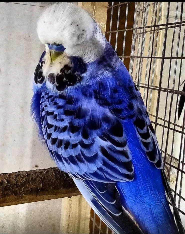 Caption: English cobalt blue budgie