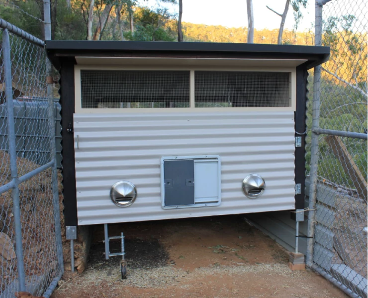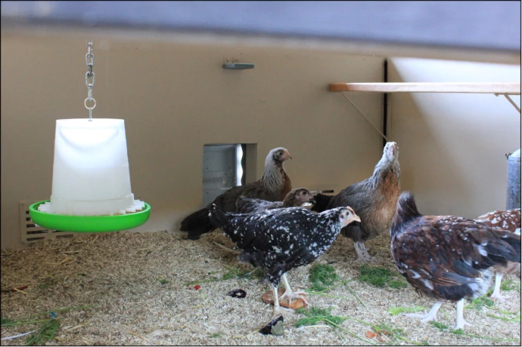Caption: Inside Chook house with Omlet auto door & light