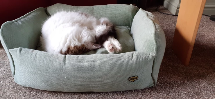 Caption: I did order the lovely Omlet cat bed, but sadly it was too small even though yeti loved it. but he also loves the replacement dog bed! so spoilt....