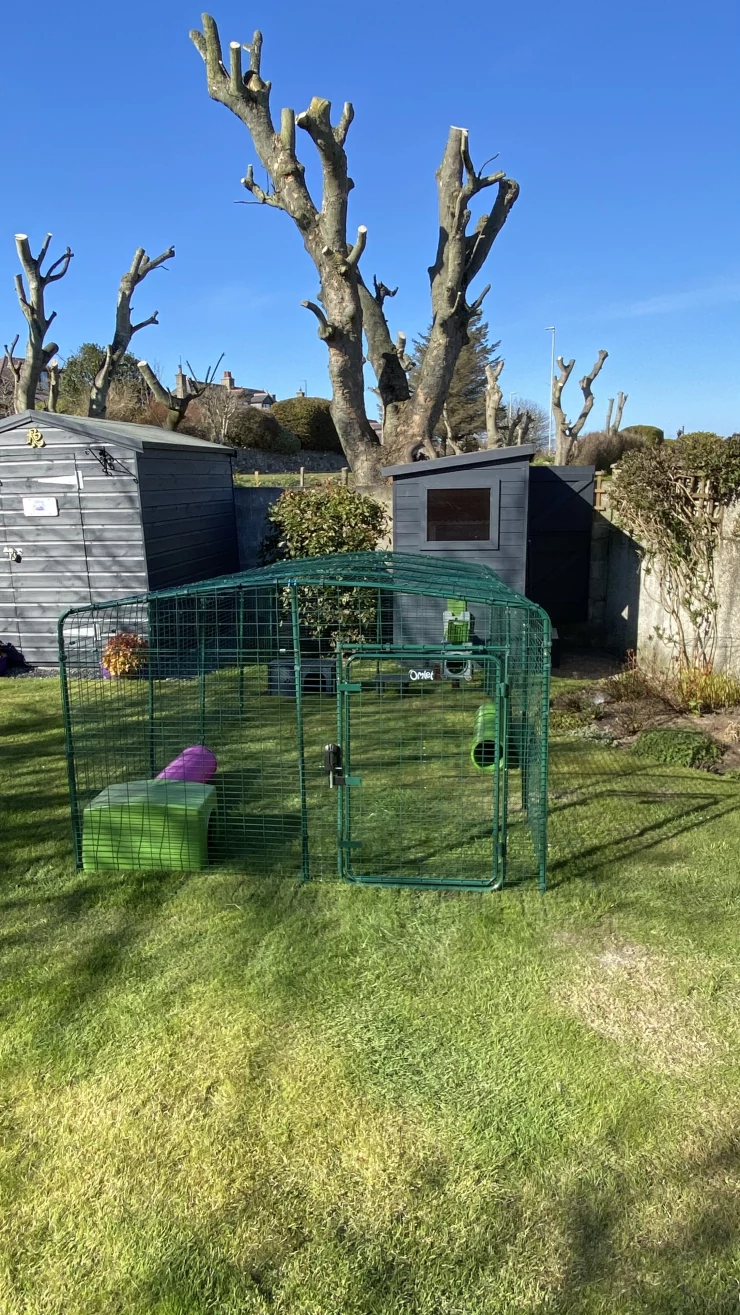 Caption: My four guinea girls absolute love their Omlet Eglu outdoor run. it is the perfect safe place for them to graze and play. i also love the fact that my daughter can sit inside and i can clean easily and access with ease.