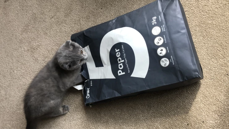 Caption: Moonpie loving her new cat litter!
