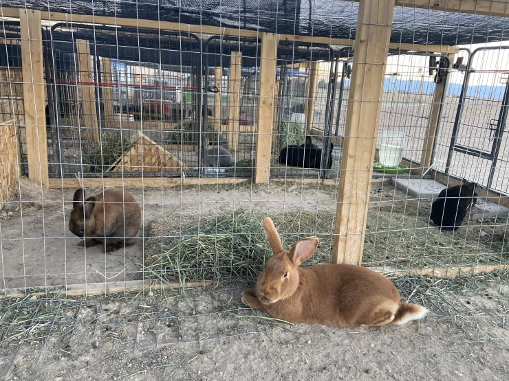 Caption: Rabbits relaxing safe in their home.
