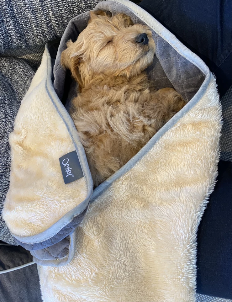 Caption: Zebedee loving his Omlet blanket