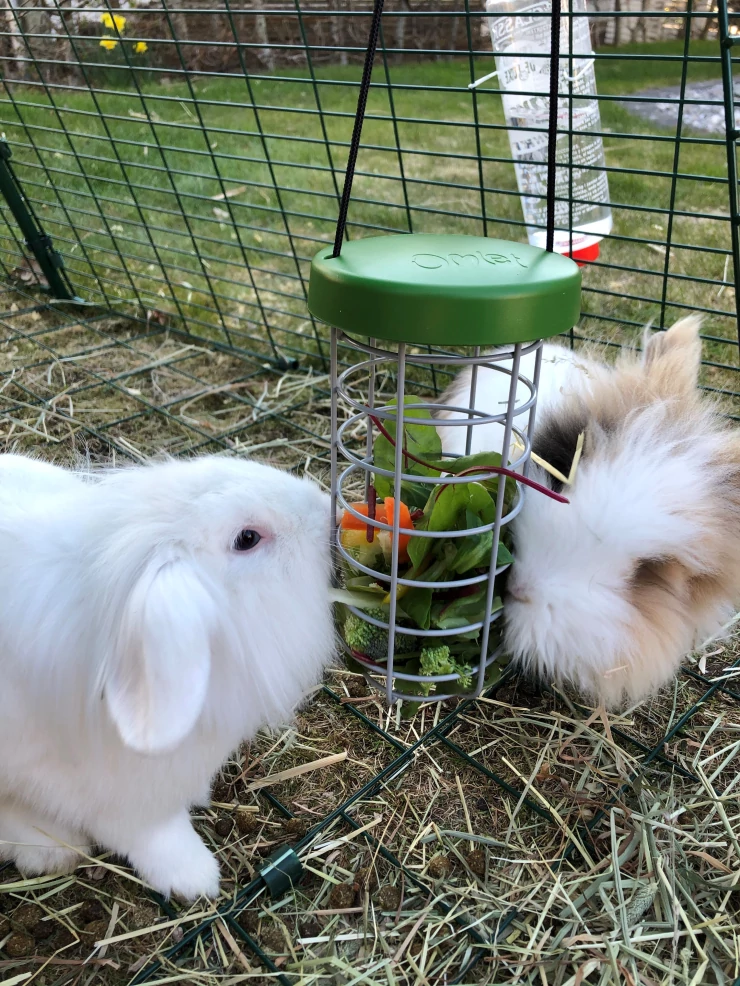 Caption: Rabbits love munching their treats from the Omlet Caddi treat holder