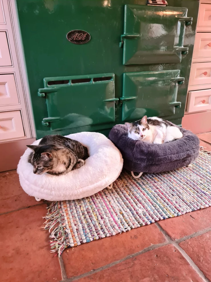 Caption: Cats enjoying the donuts