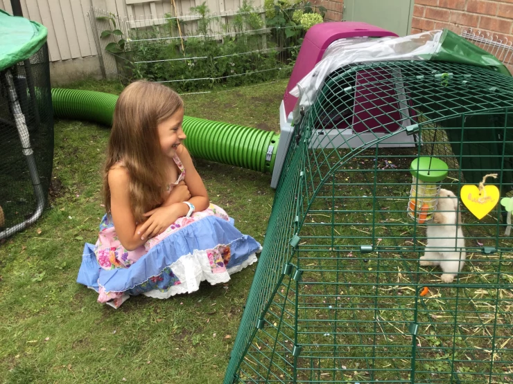 Caption: We used the playpen panels to make an enclosure outside the door from the kitchen to the garden, with access to gated run at the side of the house. bunnies love it!