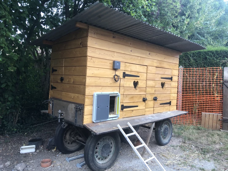 Caption: The hens love running straight through their garden with new back door installed under their house