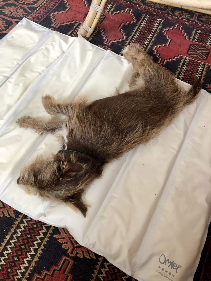 Caption: Enjoying the Omlet cooling mat during the heat wave!
