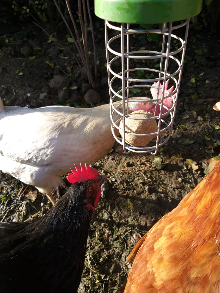 Caption: Chickens love snacking from the Caddi.