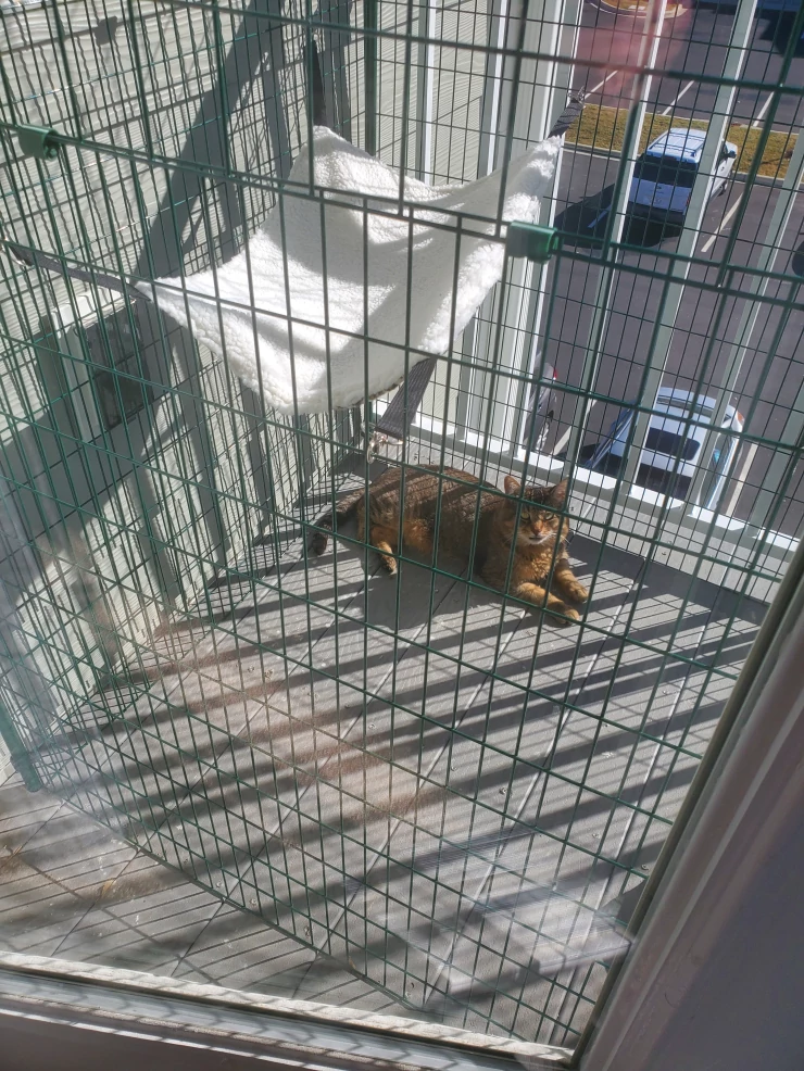 Caption: There's no better place to sunbathe than the cat balcony!