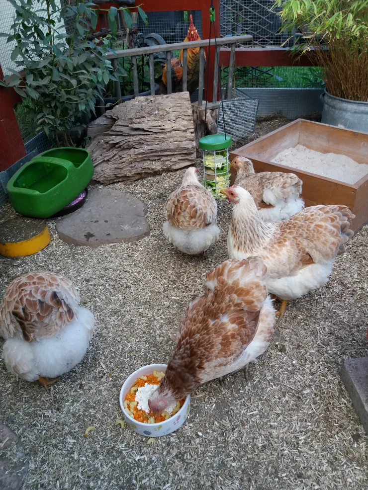 Caption: Chickens in run