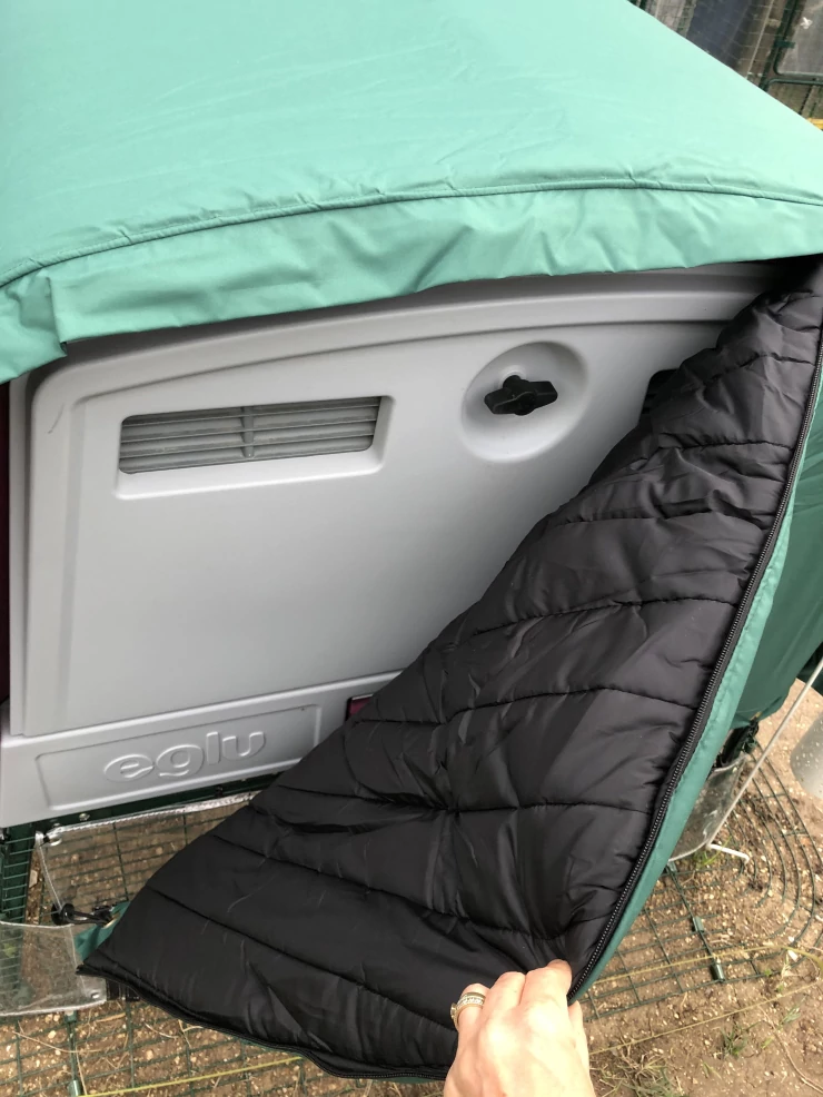 Caption: Omlet Eglu Cube large chicken coop and run with extreme temperature jacket
