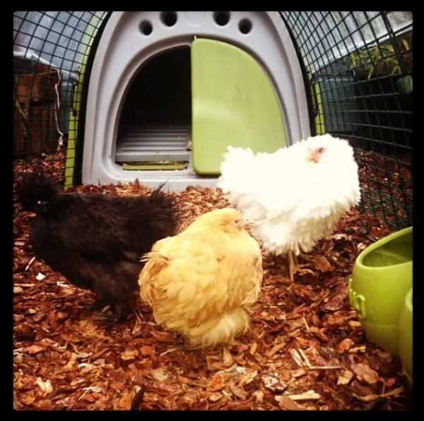 Caption: Hilda, lilly and amelia! this photo was taken over seven years aGo and hilda, lilly and the Eglu are still Going strong! sadly we lost amilia the silky