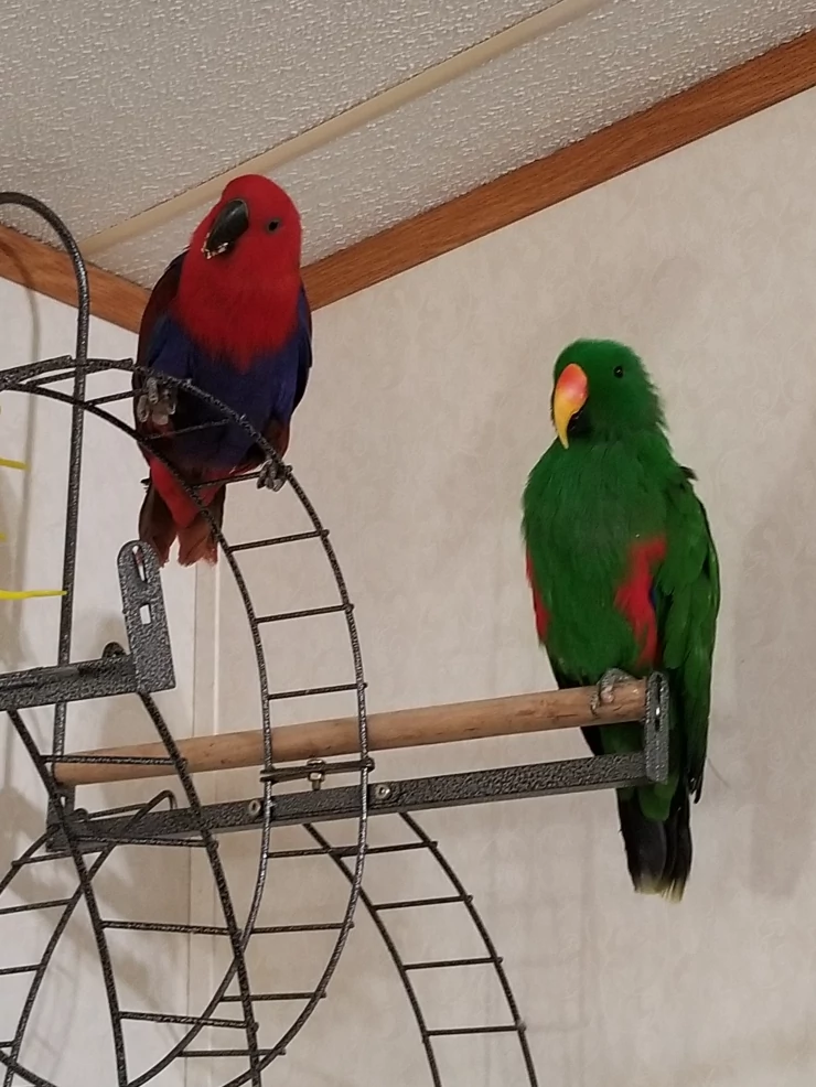 Caption: My eclectus duo Luci and Maz