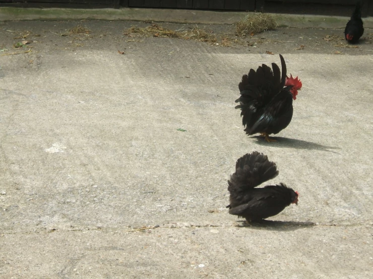 Caption: Japanese bantams walking off