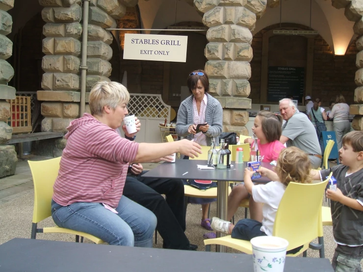 Caption: Unflattering group picture, Cathy, Phil's legs, Clare, Rosie, Daniel and Matthew.
