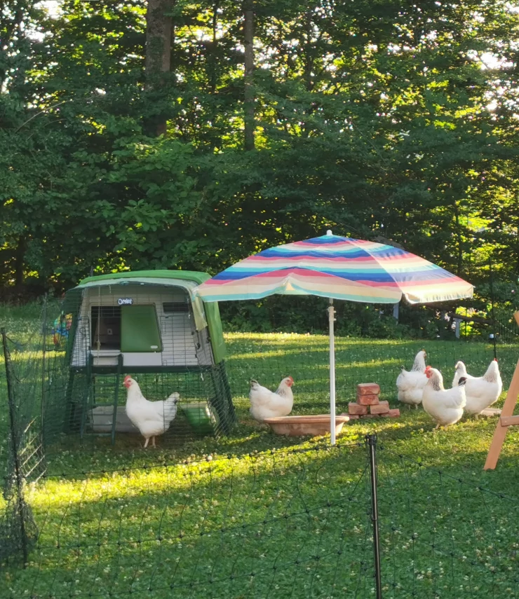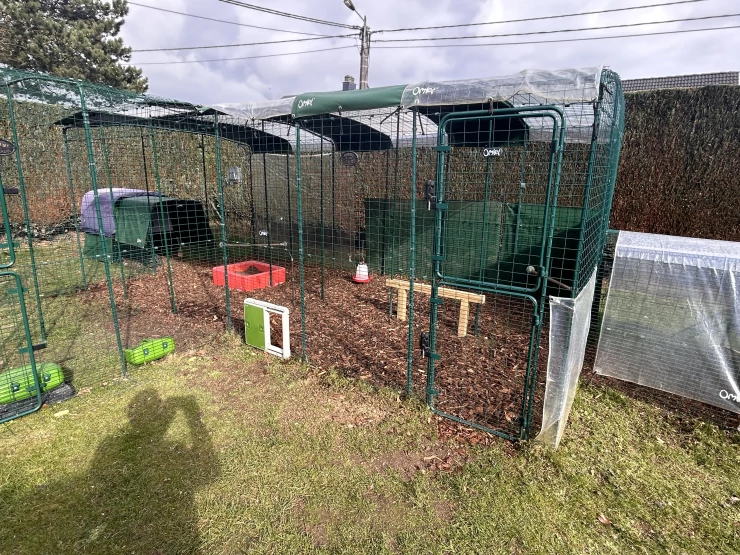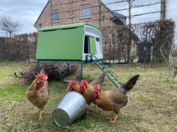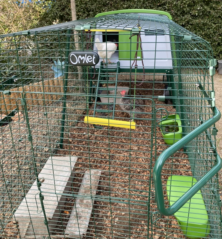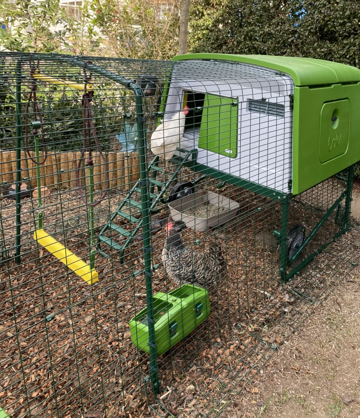 Caption: Our hens are happy in their new coop Eglu Cube