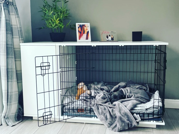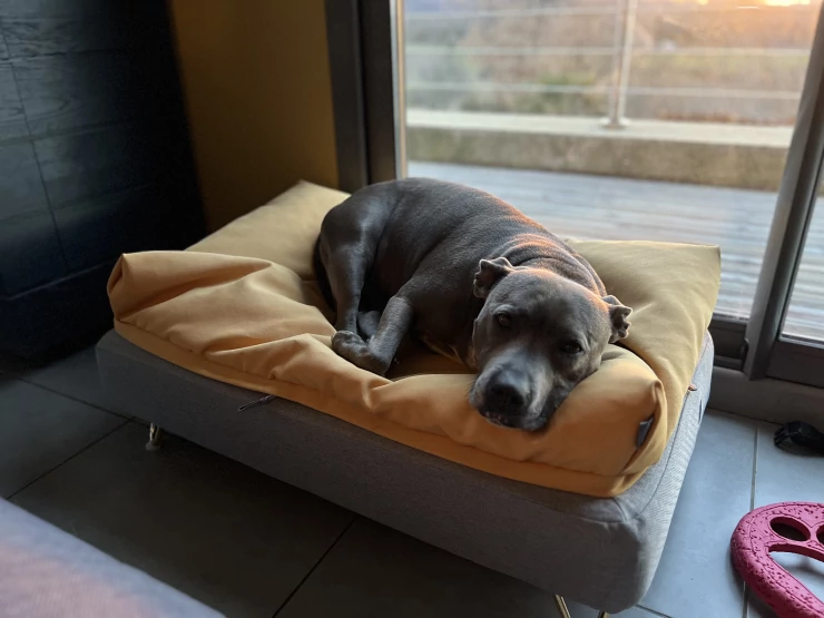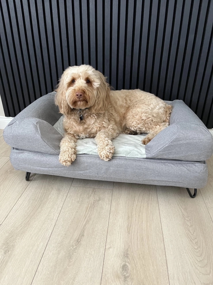 Caption: Loves his new bed!