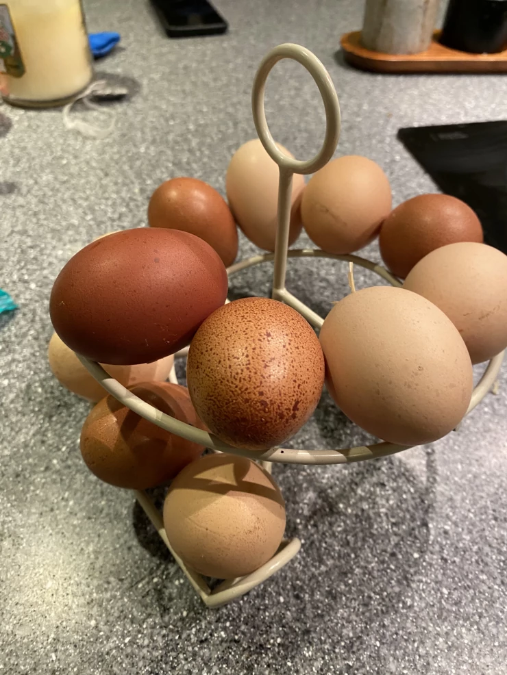Caption: Eggs on skelter
